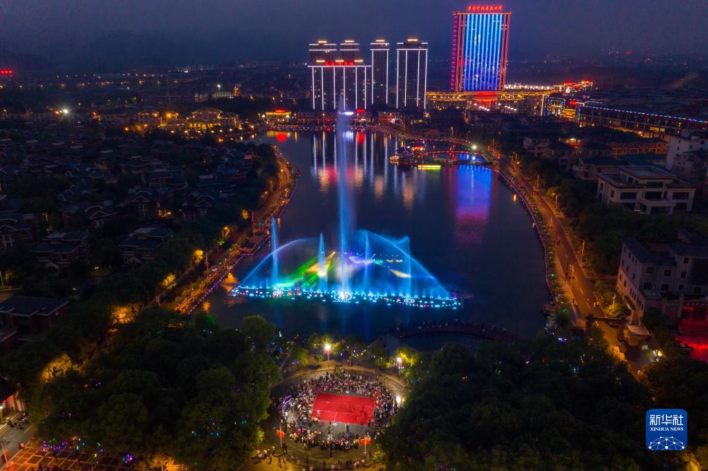 这是2021年6月4日拍摄的浙江省东阳市花园村夜景(无人机照片)