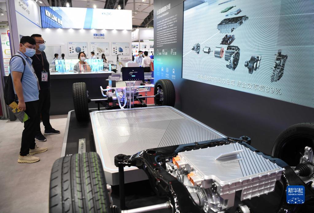 这是在第130届广交会上拍摄的比亚迪刀片电池展台(2021年10月15日摄)
