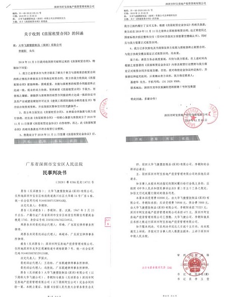 本网接到大华飞捷塑胶制品(深圳)有限公司(下称“大华飞捷公司”)、李朝阳的来信,称被深圳市阿宝房地产投资管理有限公司(下称“阿宝公司”)李敏、李水保,以签订《房屋租赁定金协议书》设套,人为制造违约情况,深圳市宝安区人民法院、深圳市中级人民法院在审判过程中裁判大华飞捷公司、李朝阳缴纳双倍违约定金,导致该企业濒临破产,严重违背了中央和国家,以及司法机关要依法保护民营企业健康发展的要求。我们认真查阅了相关反映材料认为,大华飞捷公司、李朝阳所反映的情况基本属实。