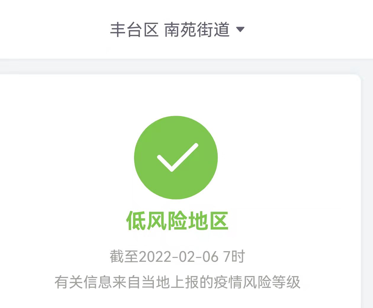 根据国务院客户端小程序消息,截至2月6日7时,北京市丰台区南苑街道南庭新苑由中风险地区降为低风险地区。