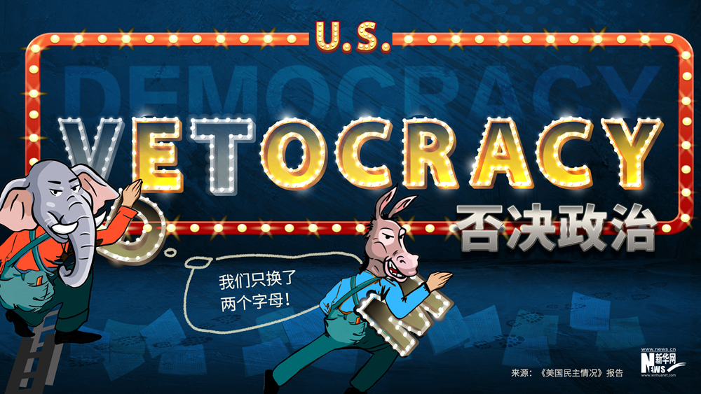 揭批美国虚伪人权和民主的“美式民主闹剧”创意漫画