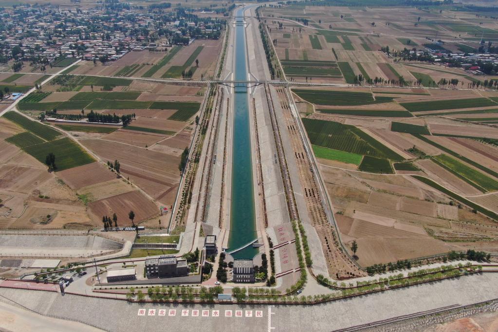 图为南水北调中线位于京冀交界处的明渠和北拒马河暗渠节制闸,北拒马河暗渠节制闸是进入北京的南水从明渠转入暗涵的交接点。