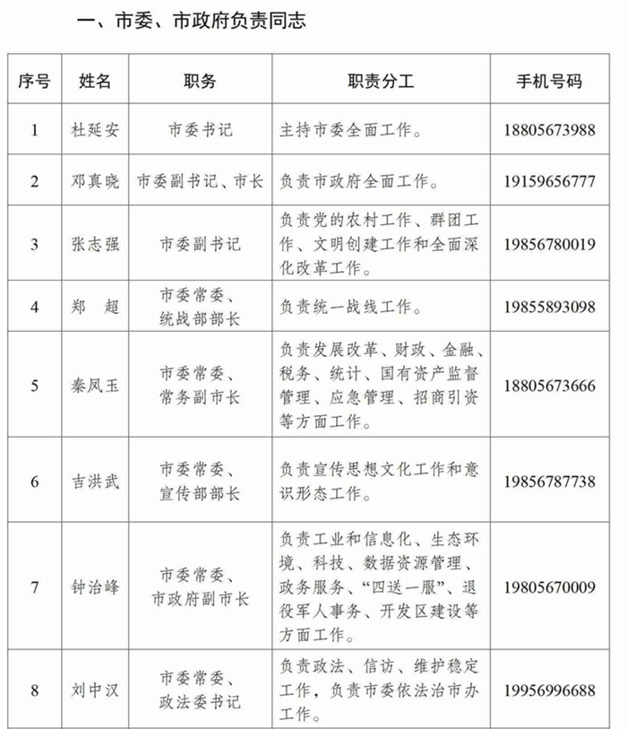 公示的部分亳州市委、市政府负责同志相关情况及联系方式