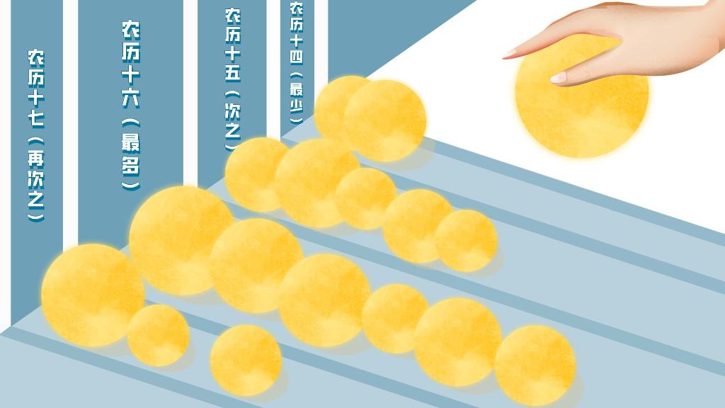 统计发现,“满月”出现次数最多的是农历十六,其次是农历十五,再次是农历十七,最少的是农历十四。