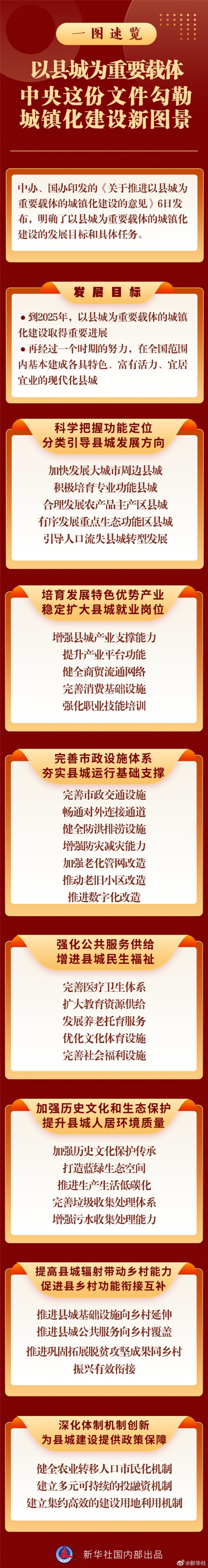 中办、国办印发的《关于推进以县城为重要载体的城镇化建设的意见》5月6日发布。以县城为重要载体的城镇化建设,发展目标是什么?又有哪些具体任务?速览这份文件的要点吧!